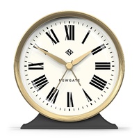 Newgate Hotel Alarm Clock Moonstone Grey | Roman Numeral Alarm Clock | Silent 'No Tick' | Dark Grey Brass Effect Bezel