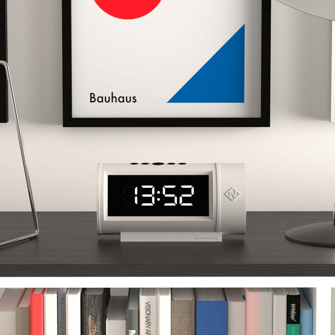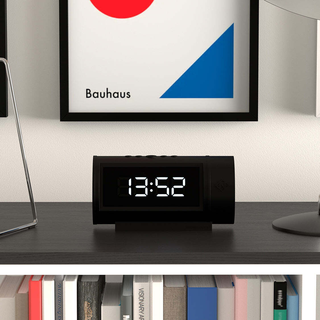 Tubular, white retro LED alarm clock with a cut-out black screen that provides the perfect modern bedside or desk accessory.