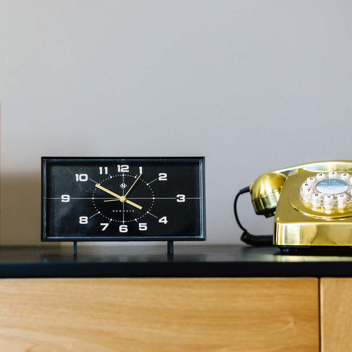 Newgate Wideboy Alarm Black A large retro-inspired alarm clock with a matt black case and mid-Century atomic dial.