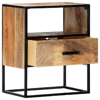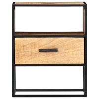 NOW $144.14Equal parts minimalist and elegant, this wooden nightstand gives a nod to a vintage charm and industrial style with its solid mango wood and powder-coated steel legs. Made of solid rough mango wood and powder-coated steel legs, the bedside cabinet is exceedingly stable and durable. Mango wood is a dense and robust hardwood which has beautiful brown or golden streaks and contours on its surface. This telephone cabinet with 1 compartment and 1 drawer provides ample space for keeping your magazines, books, as well as various other small items within reach. Important note: The solid mango wood shows natural grains, making each of the nightstand unique and slightly different from the next. The delivery is random, ensuring the exclusivity and individuality of your product.