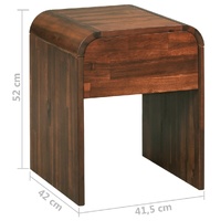 $152.09This wooden nightstand will make a timeless addition to your bedroom with its sleek and elegant design. The bedside table is made of solid acacia wood, which makes it sturdy, durable and low maintenance. With an elegant look and design, this acacia wood cabinet will give your bedroom a sophisticated touch. The sturdy top is ideal for keeping an alarm clock, a reading lamp, books, etc., or for displaying photo frames or other decorative items. The drawer provides space for keeping all kinds of smaller items organised and within reach. Assembly is easy.