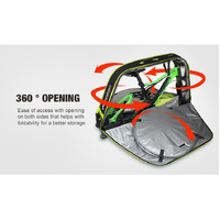 The base incorporates a built-in foam block mounting system with straps to hold the bike frame securely. Further straps and foam dividers on the upper area keep frame, seat post and handlebars safely in place. Wheels are stored in padded wheel bags. A unique feature are the removable stiffener sheets which support the upper case, when removed the Axial can be foldedto one-third full size; ideal for storage in a hotel room or apartment when travelling.