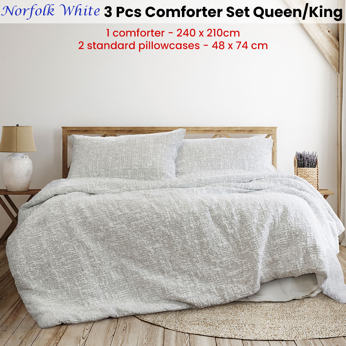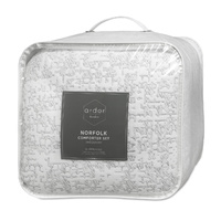$160.19Make a subtle statement with Norfolk White 3 Pcs Embossed Jacquard Comforter Set Queen/King by Ardor. Norfolk's neutral tones paired with a plain antique white reverse will compliment rustic aesthetics bringing an abundance of warmth to your winter abode. It features embossed/quilted pattern in charcoal, grey, silver, and white colour tones. It is made from quality and easy care polyester fabric and polyester for a relaxing sleep all night long.