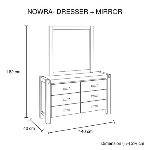 Constructed with Solid and Veneered Acacia panels, Nowra dresser has a simple appearance which will be convenient for those who want a neat and minimal look in their home. This classic dresser would look highly antique in any bedroom and provide lots of functional storage space for all your folded clothing. It also co-ordinates perfectly with the Nowra mirror.