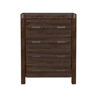 Package contents: 1x5 Pieces Bedroom Suite in Solid Wood Veneered Acacia Construction Timber Slat Double Size Chocolate Colour Bed, Bedside Table, Tallboy Dresser