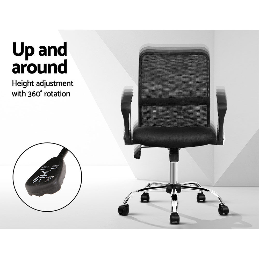 $80.90Tired of slouching over a desk, or sticking to hard plastic? Your back will thank you for purchasing our Artiss Mesh Office Chair. This eclectic chair is made of a combination of mesh and foam design for a unique, stylish presence that suits any office. The highly breathable mid-height backrest allows for good ventilation as well as appreciable lumbar support, while the high-density foam padded seat and headrest keep you comfortable over long periods. The omni-directional chair comes with all the necessary tilt and height adjustments and a gleaming chrome base with smooth castor wheels for easy shifting. With all that comfort, youll never want to leave your desk. Work smarter with our Artiss Mesh Office Chair.