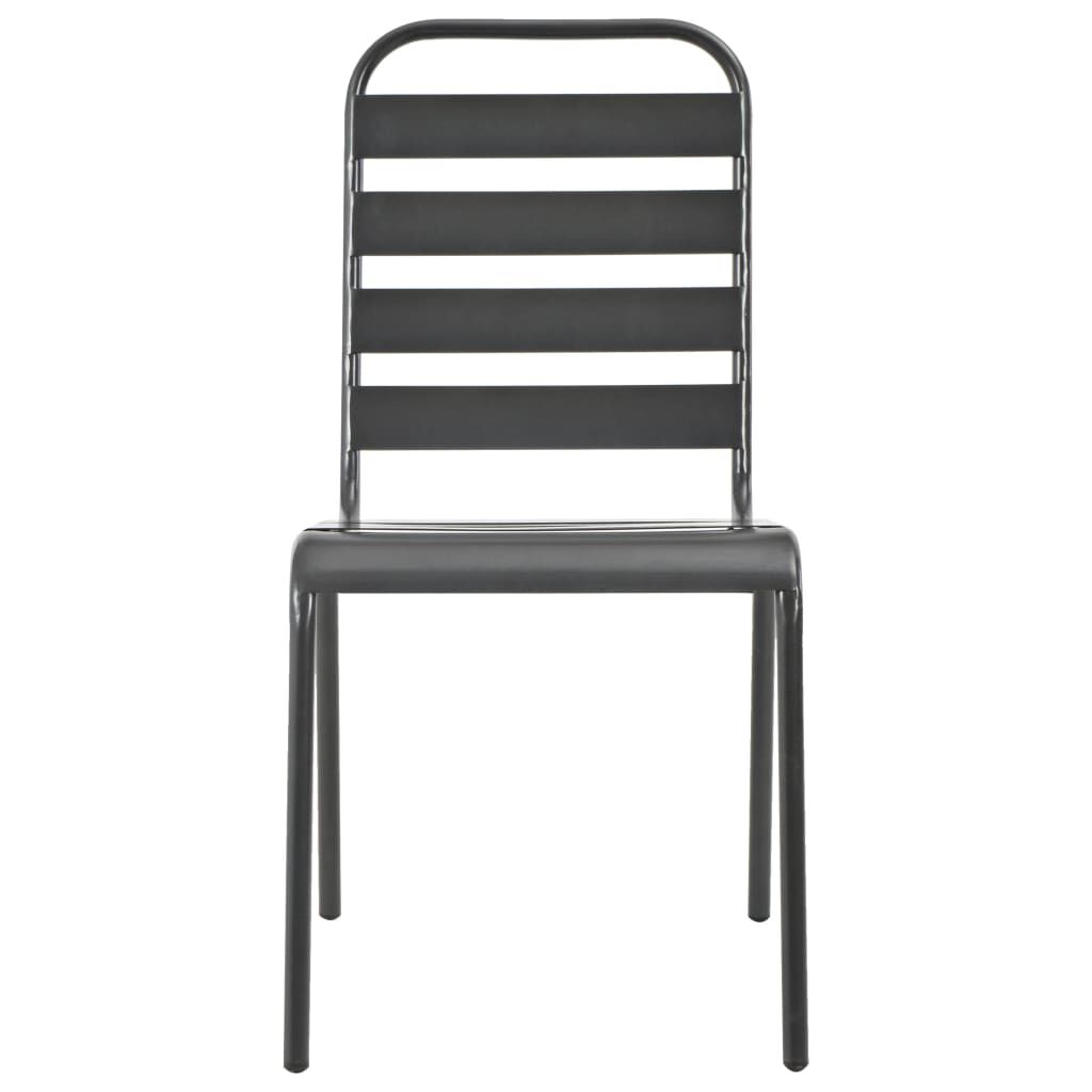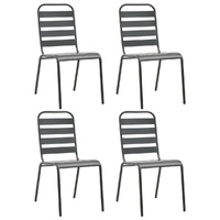 $281.78This stylish set of 4 outdoor chairs add a touch of contemporary style to your patio, garden or dining room. When you invite guests over, they will certainly marvel at these modern chairs. The high-quality garden chairs are made of sturdy steel that has been e-coated and then powder-coated. The e-coating (electrophoretic coating) is applied to make chairs resistant to rust, weather, and long-term outdoor use, while the powder coating helps to enhance the durability. The dining chairs can be stacked to save space when not in use.