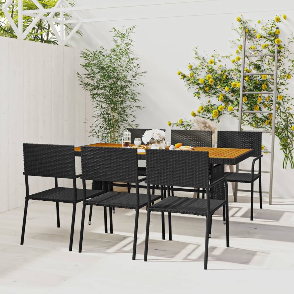 NOW $552.41This outdoor dining set, featuring an elegant design, is an excellent choice for your dining or lounging on your patio or garden. Premium material: The garden dining set is designed with waterproof PE rattan, making it easy to clean, hard-wearing and suitable for daily outdoor use.Sturdy frame: Featuring a steel frame, the table and chairs are durable and stable.Comfortable chairs: The garden chairs are designed in a more ergonomic shape for maximum comfort.Practical table: The tabletop is made of solid acacia wood in strong support, easy to clean and maintain. Note:In order to extend the life of your outdoor furniture, we recommend you to protect it with a waterproof cover.