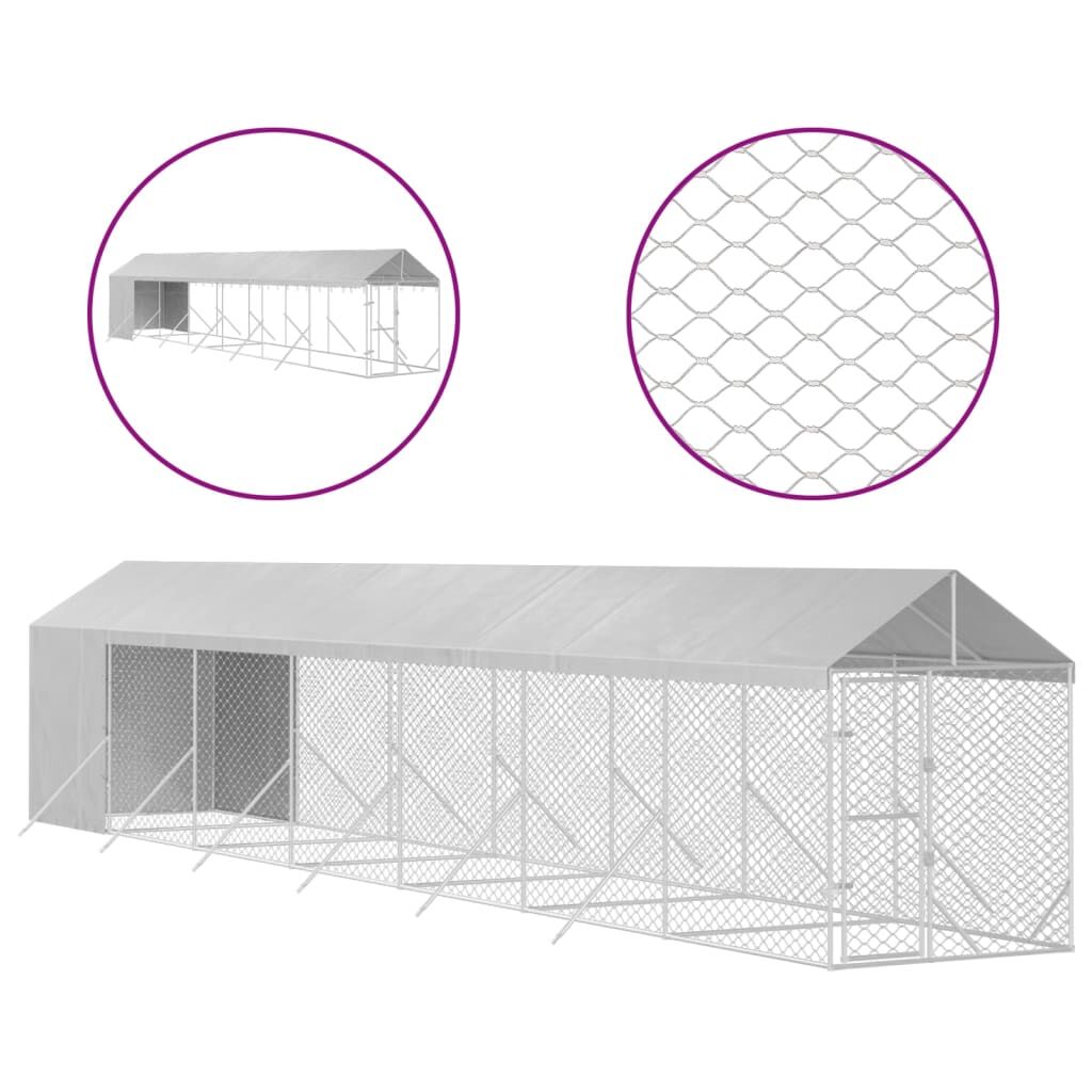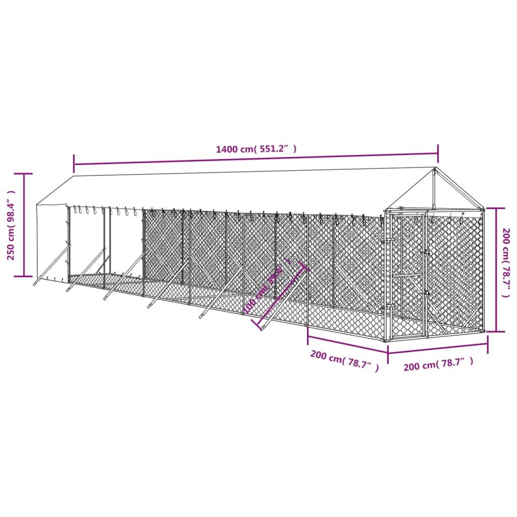 $1,068.29This practical and spacious outdoor dog kennel with roof is a perfect choice as an outdoor enclosure for keeping your animals safe and comfortable. Versatile kennel: The dog kennel features a spacious space that allows your dogs, chickens, rabbits, ducks, and other small animals to play, exercise, train, or just rest.Sturdy construction: Made of heavy-duty galvanised steel, the dog cage is sturdy and durable.Lockable door: The outside dog kennel has a lockable door to prevent your small animals from predators and other hazards while outdoors.Protective roof and sidewalls: Made of polyethylene, the roof and sidewalls are water-resistant and UV-resistant, providing protection from sun, rain, snow, as well as other weather conditions.Mesh design: The mesh design of the dog run kennel ensures a dry and ventilative living condition.