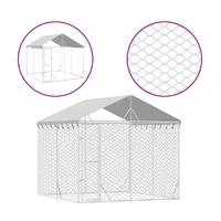$368.09This practical and spacious outdoor dog kennel with roof is a perfect choice as an outdoor enclosure for keeping your animals safe and comfortable. Versatile kennel: The dog kennel features a spacious space that allows your dogs, chickens, rabbits, ducks, and other small animals to play, exercise, train, or just rest.Sturdy construction: Made of heavy-duty galvanised steel, the dog cage is sturdy and durable.Lockable door: The outside dog kennel has a lockable door to prevent your small animals from predators and other hazards while outdoors.Protective roof: Made of polyethylene, the roof is water-resistant and UV-resistant, providing protection from sun, rain, snow, as well as other weather conditions.Mesh design: The mesh design of the dog run kennel ensures a dry and ventilative living condition.