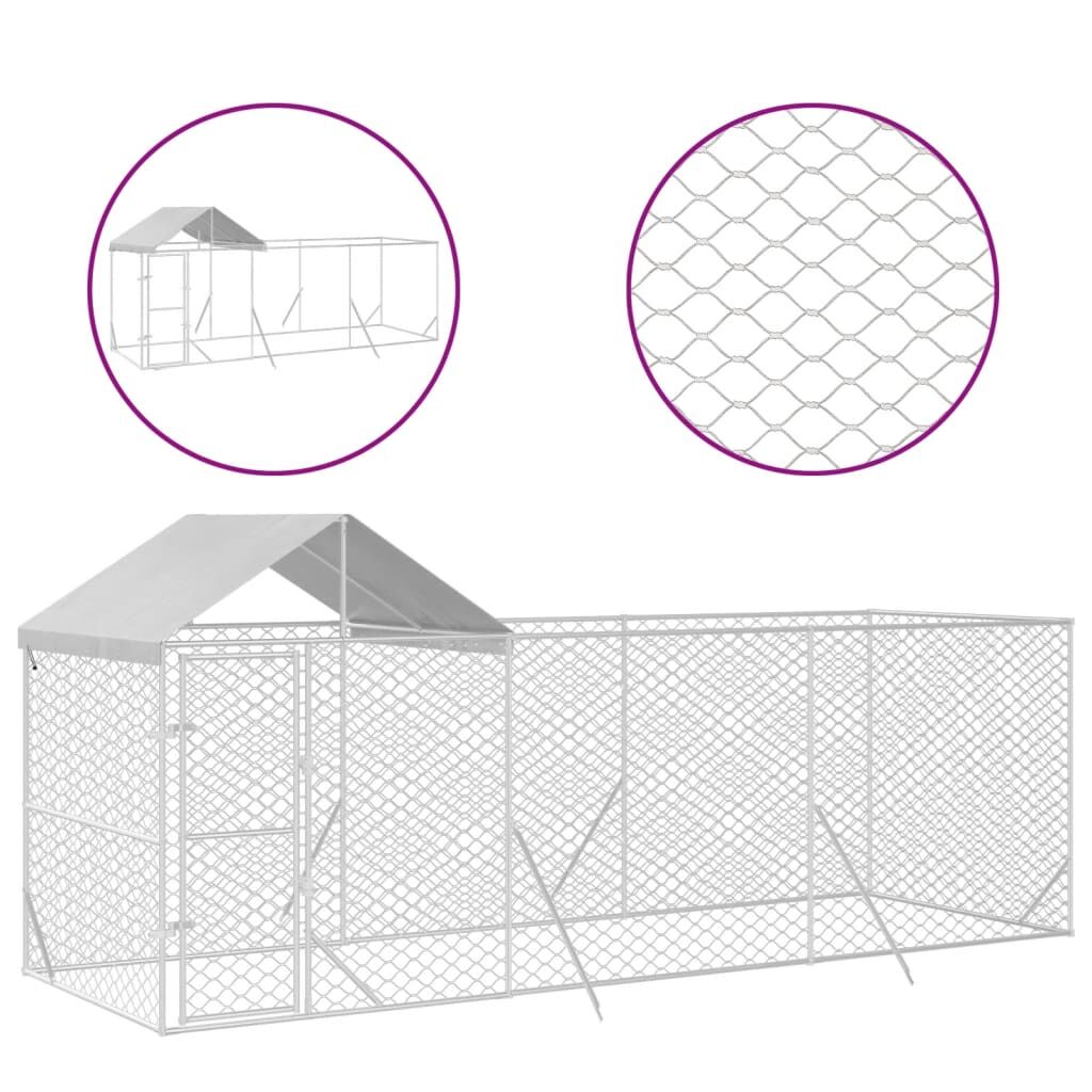 Outdoor Dog Kennel with Roof Silver 6x2x2.5 m Galvanised Steel