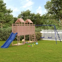 Do you want to give your children the freedom to play at home? This wooden outdoor playset transforms your backyard into a playground for imaginative adventures! Durable material: This climbing frame with slide is made of solid pine wood. Solid pine wood is a beautiful natural material. Pine wood has a straight grain, and the knots give the material its signature, rustic look. Sturdy and stable frame: The wooden frame of the garden climbing frame ensures sturdiness and stability. In addition, the "A" shaped legs of the children's swing allow for balance.Multi-activity centres: The climbing frame features a 90 cm height platform and stands out with its wave slide, a double swing set, a ladder as well as sandpits. Your little ones can also invite their friends to join the fun. Thoughtful design: The surrounding wooden railings are designed to ensure the safety of children during their happy play. Also, the wooden roof provides shade for your children on hot summer days. Endless fun: This fun-filled wooden outdoor playhouse is the perfect way for your children and their friends to enjoy entertainment, have more interactive time and make memories for you and your children! Warning:Only for domestic useOutdoor use Not suitable for children under 3 years Recommend user age: 3-8 years old Maximum per user weight: 45 kg Note:The product shall be anchored in order to reduce tipping hazards. The anchors are sold separately. Good to know:To make assembly as easy as possible, each product is delivered with a manual.