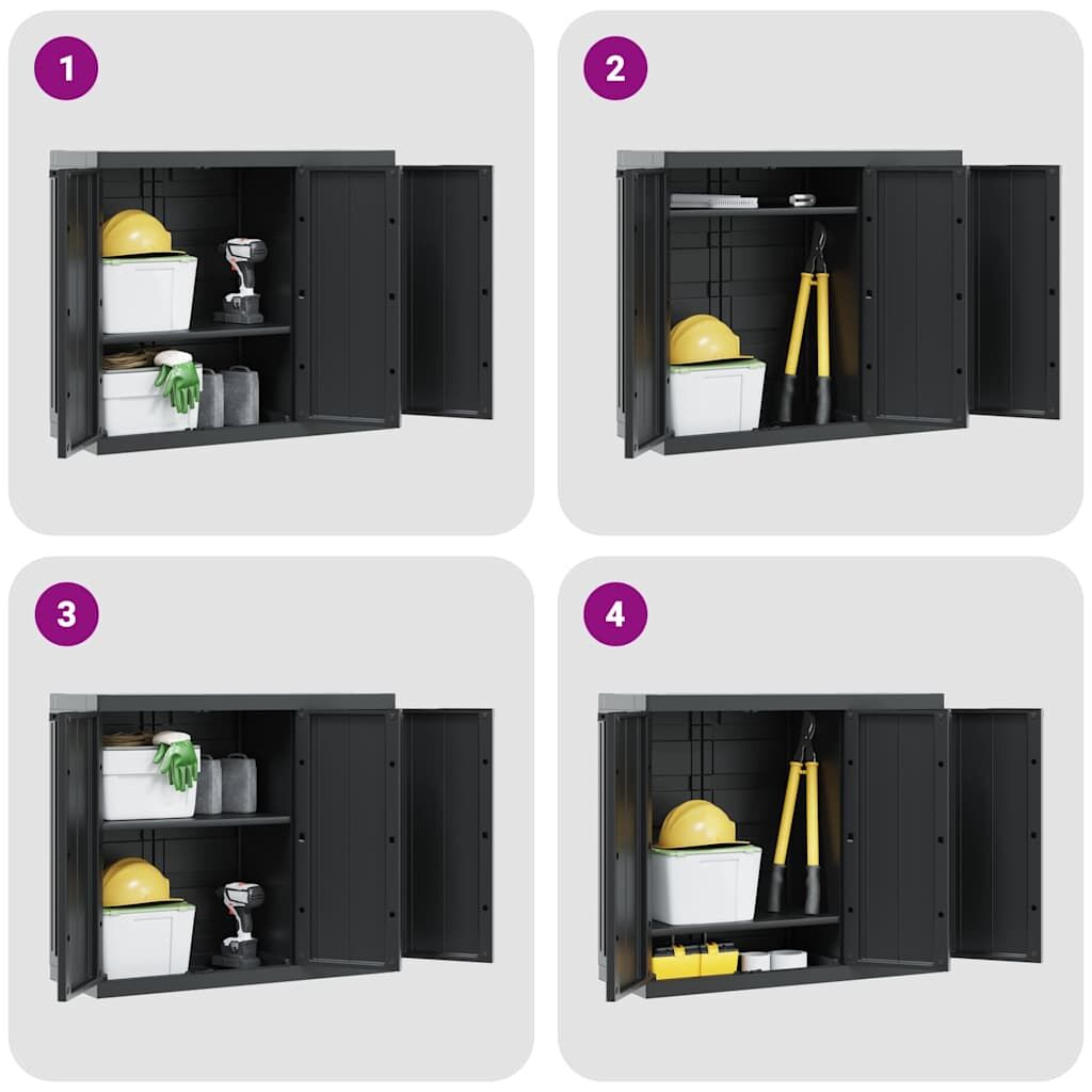 $341.09This outdoor storage cabinet is ideal for organising and storing household supplies, tools, or other items. Durable material: Polypropylene (PP) is a popular plastic that is also one of the most used materials in outdoor furniture. It's lightweight, tough, and resistant to impact. Also, this garden storage cupboard is weather-resistant and easy to maintain. Ample storage space: This utility cupboard provides ample storage space to help you sort out your garden supplies, tools, or other items. And the shelf can be adjusted to accommodate items of different sizes. Lockable: The garden storage furniture can be locked for added safety (lock not included). Compact design: With a compact design to make the most of limited space, this outdoor cupboard is perfect for gardens, balconies, and patios. Good to know:To make sure your outdoor furniture stays beautiful, we recommend protecting it with a waterproof cover. Warning: To prevent it being overturned, this product must be used with the provided wall attachment device.