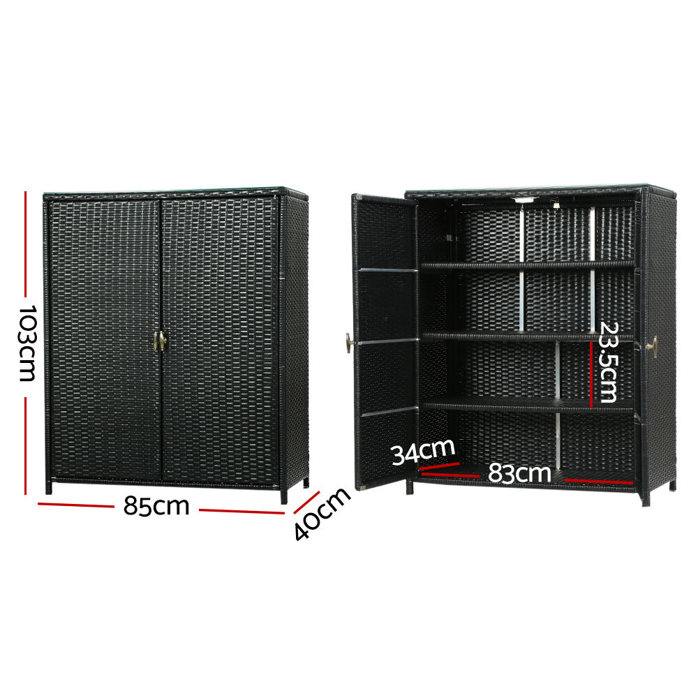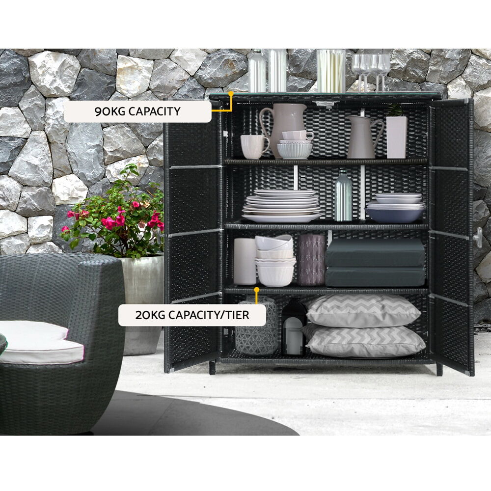 $216.89Looking for extra storage for storing your garden or outdoor essentials and expensive tools? We've got you covered. Tidy up your outdoor space and keep things organised with our excellently designed Gardeon outdoor wicker storage cabinet. It flaunts fantastic 2-in-1 design, which makes for versatile use. You can use it as a storage cabinet to store your outdoor essentials and a bar table. Our outdoor storage cabinet comes with a thick tempered glass tabletop with suction pads to keep it in place. It's boasts sturdy aluminium construction, which contributes to its strong inherent structure. It also comes with exquisite handles for easy opening and closing and wall attachment points for safety. Tall, slim, and pleasant looking, this storage cabinet features a gorgeous handwoven PE wicker look and feel that you'll love. It's spacious and has a great weight holding capacity. Additionally, it offers good weather resistance and won't rust, which makes it suitable for outdoor use. Why wait? Bring home this fabulous Gardeon outdoor wicker storage cabinet today!