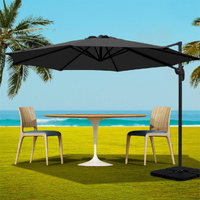For alfresco dining and poolside relaxation, our Outdoor Umbrella and Base Set is a perfect complement to any outdoor furniture setting. Featuring an elegant waterproof and UV-resistant 3m fabric top, the umbrella utilises a cantilevered aluminium side post for maximum space under the shade: no centre pole to get in the way. The entire steel frame including the 8-rib top supports and supporting pole are powder-coated for toughness. The top and base can be adjusted and pivoted towards the sun for the right amount and angle of shade. A user-friendly cranking system makes opening and closing quick and easy. Not least, the steel base can be readily bolted in place or weighed down with the Umbrella Base. Featuring a sturdy 4-plate design constructed from heavy-duty HDPE plastic, the stand is built to withstand moderate gusts of wind and is anti-fade. To use, simply fill with water through the fill spout and insert your umbrella. When fully filled, each piece weighs approximately 15kg, giving you a combined weight of 61.61kg. Use in a 2, 3 or 4-plate configuration to best suit your needs. When the day is done, simply empty the plates and carry them home with the convenient carry handles. Enjoy the outdoors to the fullest with an Umbrella and Base Set.