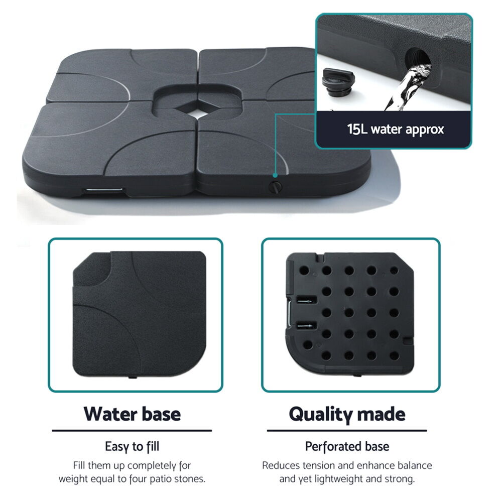 $87.29Secure your umbrella with our Instahut fillable base, designed for maximum stability. Easily add water for steadfast support, even on windy days. Relocating? The integrated hand grip ensures effortless mobility. Always check compatibility to ensure it fits your outdoor umbrella. Crafted for both strength and convenience, it's the essential anchor for your outdoor shade needs.