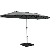 It can be hard trying to fit everyone under one roof. Now you never have to worry about space again thanks to the Twin Outdoor Umbrella. This extra-large patio umbrella is perfect for summer picnics, BBQs or family beach days, thanks to its 4.57m diameter and double-sided canopy. Made from UV+50, 3-layer, water-resistant and UV-resistant polyester fabric and with the support of 12 steel ribs, the canopy will last you through all kinds of weather. It is easily operated by hand using the heavy-duty, fail-safe handle supported by a powder-coated steel pole and durable steel base. Secure your brand-new umbrella with an Umbrella Base. Featuring a sturdy 4-plate design constructed from heavy-duty HDPE plastic, the stand is built to withstand moderate gusts of wind and is anti-fade. To use, simply fill with water through the fill spout and insert your umbrella. When fully filled, each piece weighs approximately 15kg, giving you a combined weight of 61.61kg. Use in a 2, 3 or 4-plate configuration to best suit your needs. When the day is done, simply empty the plates and carry them home with the convenient carry handles. Enjoy the outdoors to the fullest with an Umbrella and Base Set.
