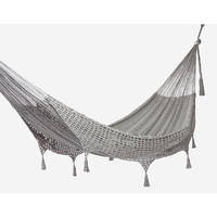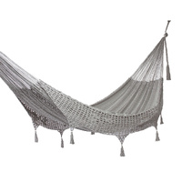 $253.88This gorgeous generous-sized hammock will quickly turn into your new favorite afternoon spot. Mayan Legacy artists hand-weave it from 100% cotton rope in elegant colours and add a beautiful crocheted fringe with tassels and floral designs for a glamorous finish. Just add a pair of straps or a frame and enjoy.
