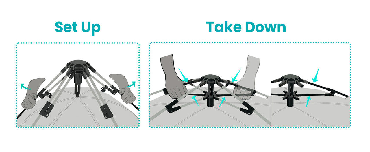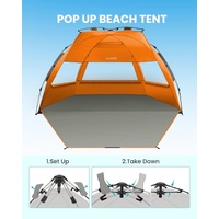 Pop Up Beach Tent, Tent Carry Bag, 4 x Wind Strings, 6 x Plastic Beach Stakes |