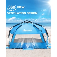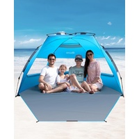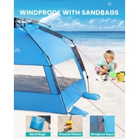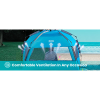 • UPF50+ Ventilated Sun Shelter: Crafted from premium 210T polyester with a 3000mm PU coating, our beach tent offers UPF 50+ protection to effectively block heat and harmful UV rays. It's 100% weatherproof, shielding you from harsh sun and unexpected rain. 3 large mesh windows allow excellent ventilation and refreshing breezes, making it ideal for all outdoor activities.