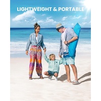 This Portable Pop Up beach tent boasts a unique circular design, providing a 20% increase in capacity compared to regular triangular designs. With enough room for 2 adults and 1-2 kids to comfortably sit inside, it is an ideal choice for family road trips, camping, or backpacking.