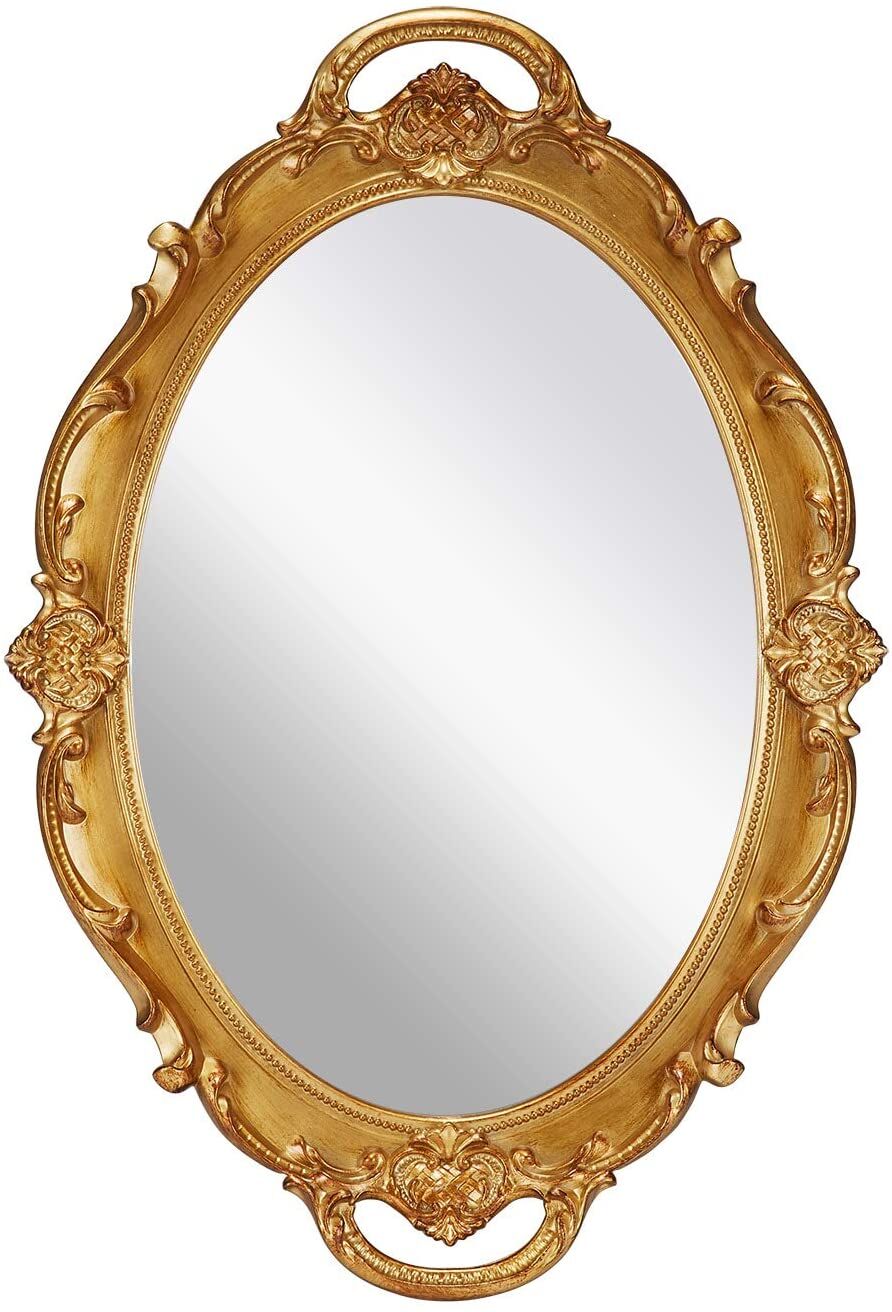 1 x Oval Antique Gold 25 x 38 cm Vintage Carved Hanging Wall Mirror for Bedroom and Living-Room