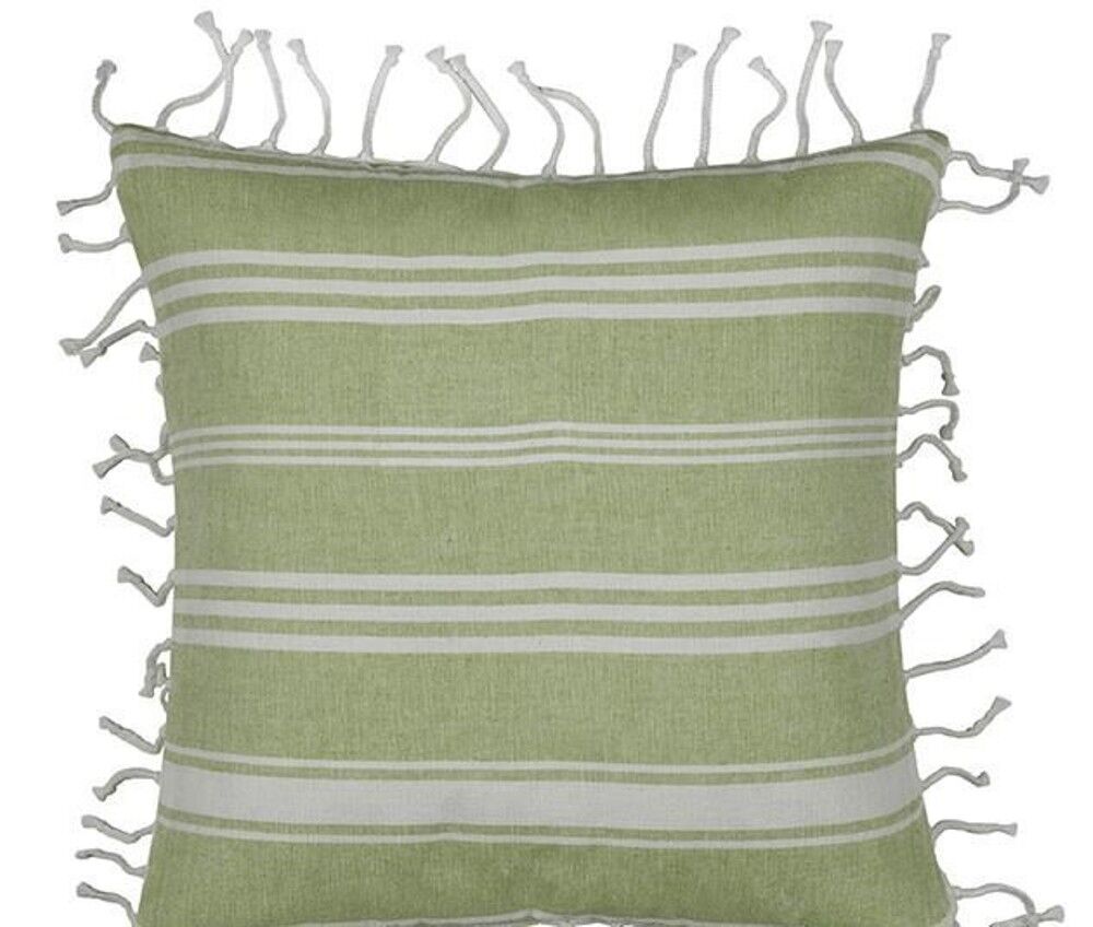 Pack of 4 Fresh Green & White Striped Cushion Cover with white knotted edging