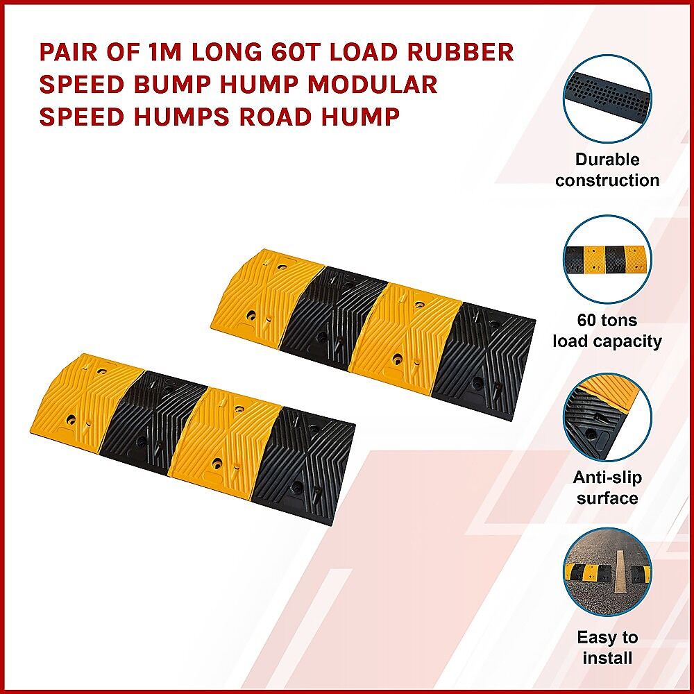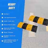 $125.54If speeding around your parking lot is a problem, these 60-tonne rubber modular speed bumps from Randy Travis Machinery are the answer. A full metre long, these road humps will grab the attention of drivers with their eye-catching yellow-and black colour. Capable of handling 60-tonne loads, these road bumps will stand up under the weight of even large cargo trucks. Made with durable, yet forgiving natural rubber, these speed bumps will slow down traffic without damaging vehicles. Their rugged construction assures you of years of service.