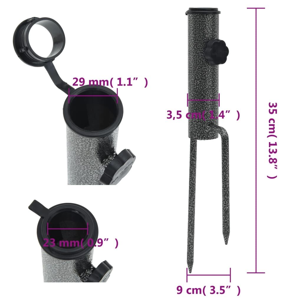 $22.49These parasol stands simply plug into the ground and provide instant shade by holding your parasol in place. Durable and robust: The parasol holder is made of galvanised steel, which is durable and long-lasting. And it can be embedded deep and stably in the sand, thus providing a stable base for the parasol.Easy to use: Simply insert the umbrella stand into the ground, place the desired items in the holder, and tighten the mounting screws.Adjustable diameter: There is a screw adjustment button to make it suitable for different umbrella bars that you can adjust for your needs.Multiple applications: This parasol base is suitable for parasols, fishing umbrellas, garden umbrellas, and other products that need to be fixed upright for use.