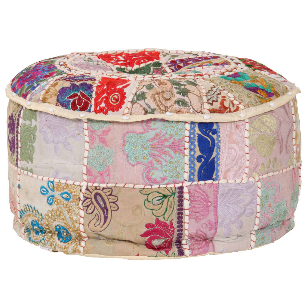 Enjoy a relaxing moment on our vintage-look handmade pouffe! It will become a real eye-catcher in any interior with its patchwork design. This hassock is handmade of 100% cotton with filling to make it soft and comfortable. It is studded with exquisite exotic embroider to bring an Indian style to your interior. Place the pouffe in front of a sofa or an armchair, and it will contribute to a cosy ambience in any room! Please note: Slight differences between every piece can be found due to the handmade nature of the product.