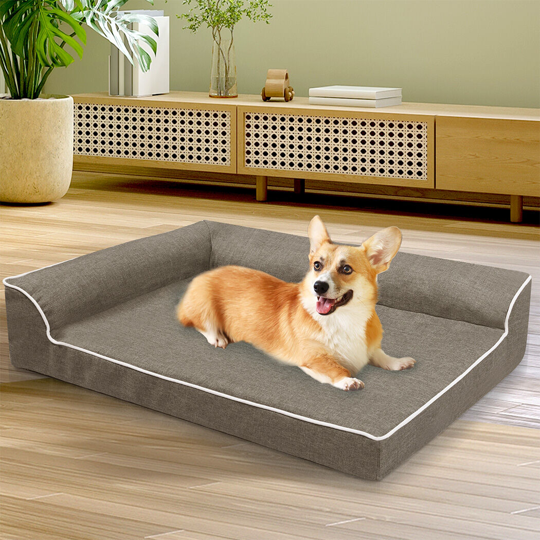 The unique L-shaped bolster sofa bed design offers additional support for your pet's neck and head, promoting deep, restorative sleep. The surrounding bolsters not only provide a sense of security but also allow your pet to snuggle comfortably and relax fully.