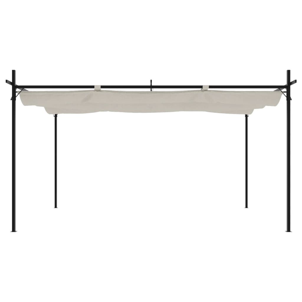 This pergola offers excellent shelter for family gatherings, parties, and other outdoor activities. UV-resistant fabric: The roof of the garden pergola, made of polyester fabric with a PA coating, guards you from the glare and harmful UV rays of direct sunlight.Stable and sturdy structure: The powder-coated steel and aluminium frame make the outdoor pergola stable and strong.Retractable roof: The metal pergola has a retractable roof, so you can adjust the shade as you need. Wide applications: This pavilion serves various purposes, including outdoor dining, entertainment, relaxation, and meditation. Good to know:This product is not suitable to use in bad weather conditions such as strong wind, heavy rain, snow, storm, etc.