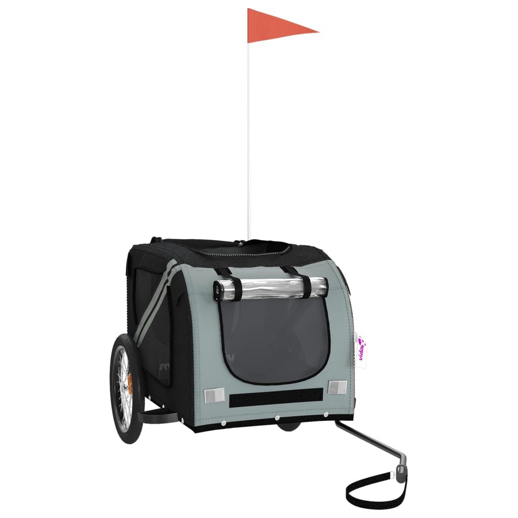 $122.71This handy pet bike trailer is a great addition to your pet's day out, allowing your pet to enjoy a more comfortable journey. Durable frame: Iron is a strong and hard material. It's a solid favourite in industrial and furniture construction. With a frame made of iron, the bicycle trailer is sturdy and reliable, giving you peace of mind when riding on the road.Comfortable bike trailer: This bike cargo trailer is made from oxford fabric and features the PVC cover to keep your pet out of the drizzle. In addition, there is a black load-bearing board at the bottom for comfortable space.Convenient design: Zippered front and back doors make it easy to get in and out, and the mesh windows and a zipped roof allow air to circulate inside and keep your pet cool during the journey.Safe riding: The bicycle cargo trailer has two large wheels that allow for smooth and safe travel on various grounds and the reflectors on the outside provide visibility in the dark, plus the flag can increase traffic safety.Wide applications: Perfect for carrying small dogs and pets, this pet bike trailer can be attached to your bike easily. It can also be used to carry groceries, camping equipment, sporting goods, or whatever you need to take with you!