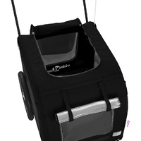$105.97This handy pet bike trailer is a great addition to your pet's day out, allowing your pet to enjoy a more comfortable journey. Durable frame: Iron is a strong and hard material. It's a solid favourite in industrial and furniture construction. With a frame made of iron, the bicycle trailer is sturdy and reliable, giving you peace of mind when riding on the road. Comfortable bike trailer: This bike cargo trailer is made from oxford fabric and features the PVC cover to keep your pet out of the drizzle. In addition, there is a black load-bearing board at the bottom for comfortable space. Convenient design: Zippered front and back doors make it easy to get in and out, and the mesh windows and a zipped roof allow air to circulate inside and keep your pet cool during the journey.Safe riding: The bicycle cargo trailer has two large back wheels and one small front wheel that allow for smooth and safe travel on various grounds and the reflectors on the outside provide visibility in the dark, plus the flag can increase traffic safety. Wide applications: Perfect for carrying small dogs and pets, this pet bike trailer can be attached to your bike easily. It can also be used to carry groceries, camping equipment, sporting goods, or whatever you need to take with you!