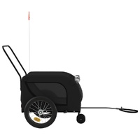 $117.13This handy pet bike trailer is a great addition to your pet's day out, allowing your pet to enjoy a more comfortable journey. Durable frame: Iron is a strong and hard material. It's a solid favourite in industrial and furniture construction. With a frame made of iron, the bicycle trailer is sturdy and reliable, giving you peace of mind when riding on the road. Comfortable bike trailer: This bike cargo trailer is made from oxford fabric and features the PVC cover to keep your pet out of the drizzle. In addition, there is a black load-bearing board at the bottom for comfortable space. Convenient design: Zippered front and back doors make it easy to get in and out, and the mesh windows allow air to circulate inside and keep your pet cool during the journey.Safe riding: The bicycle cargo trailer has two large back wheels and one small front wheel that allow for smooth and safe travel on various grounds and the reflectors on the outside provide visibility in the dark, plus the flag can increase traffic safety. Wide applications: Perfect for carrying small dogs and pets, this pet bike trailer can be attached to your bike easily. It can also be used to carry groceries, camping equipment, sporting goods, or whatever you need to take with you!