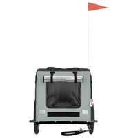 $136.79This handy pet bike trailer is a great addition to your pet's day out, allowing your pet to enjoy a more comfortable journey. Durable frame: Iron is a strong and hard material. It's a solid favourite in industrial and furniture construction. With a frame made of iron, the bicycle trailer is sturdy and reliable, giving you peace of mind when riding on the road. Comfortable bike trailer: This bike cargo trailer is made from oxford fabric and features the PVC cover to keep your pet out of the drizzle. In addition, there is a black load-bearing board at the bottom for comfortable space. Convenient design: Zippered front and back doors make it easy to get in and out, and the mesh windows and a zipped roof allow air to circulate inside and keep your pet cool during the journey.Safe riding: The bicycle cargo trailer has two large wheels that allow for smooth and safe travel on various grounds and the reflectors on the outside provide visibility in the dark, plus the flag can increase traffic safety. Wide applications: Perfect for carrying small dogs and pets, this pet bike trailer can be attached to your bike easily. It can also be used to carry groceries, camping equipment, sporting goods, or whatever you need to take with you!
