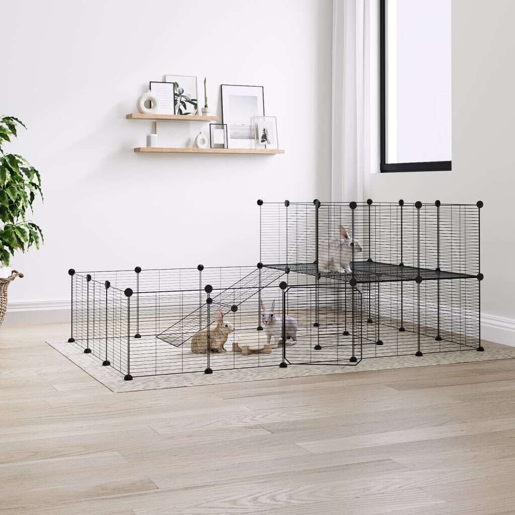 This trusty pet cage provides a spacious and safe enclosed space for your lovely pets to exercise, play and rest. Sturdy material: The animal cage is made of powder-coated steel, sturdy and durable, ensuring years of use with little maintenance.DIY assembly: The cage features multiple panels, so you can assemble it to any shape and size you want.Spacious room: The animal cage offers plenty of place for your pets to play and rest while staying safe within the boundaries.Practical door: The pet cage also has a practical door, which makes it much more convenient to take care of your pets. Note: Each product comes with an assembly manual in the box for easy assembly.