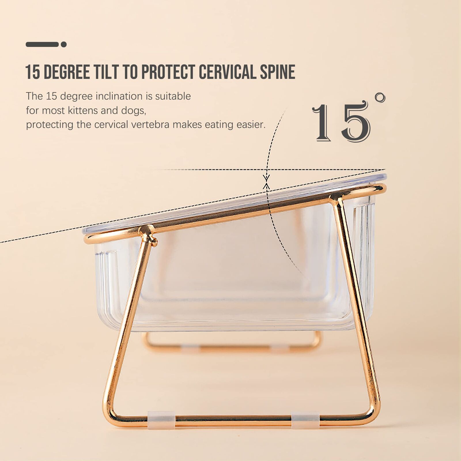 Tilted 15 degree tilt design can protect the pet's cervical spine and help release the pressure on the pet's neck.