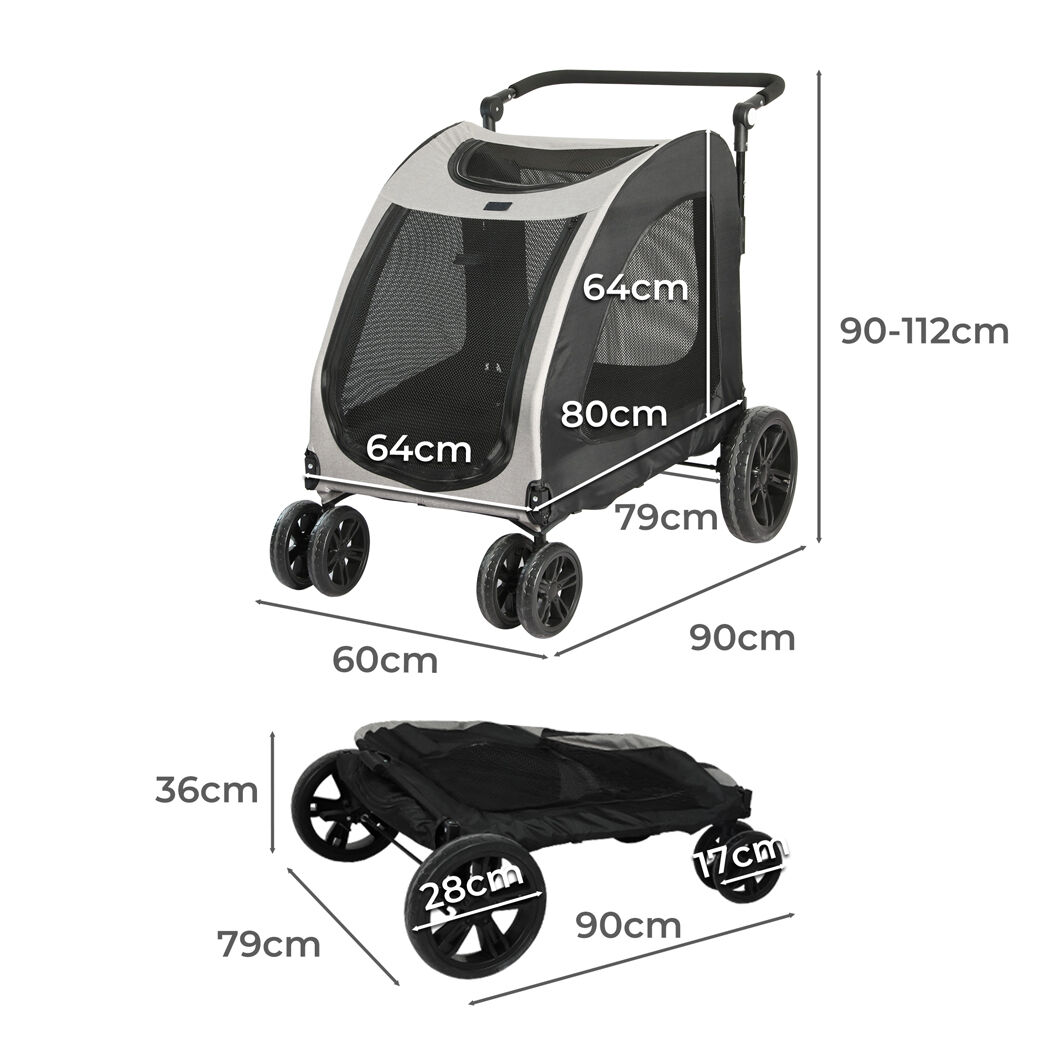 Folded dimensions: 90cm x 79cm x 36cm (L x W x H)