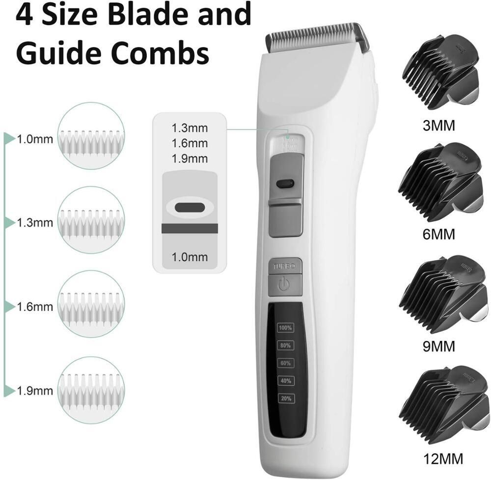 Time to groom your pet? Forget about bringing it to expensive pet groomers when you can do it professionally on your own with ourCordless Pet Clipper Set. Our set has everything you need for the perfect groom. Featuring four different sizes of combs, you can choose to trim in various ways. From close crop to fine touch-ups and anything else in between, the possibilities are there for you to create. The handy electric clipper is a joy to use with little vibration and noise and has an advanced cooling system to prevent overheating. The fixed stainless steel bottom blade and moving ceramic upper blade are made to exacting standards and feature an R-shape design that prevents accidental cuts into your pet’s skin. The entire set comes with a lubricant oil bottle, cleaning brush. Give your pet a great makeover today!