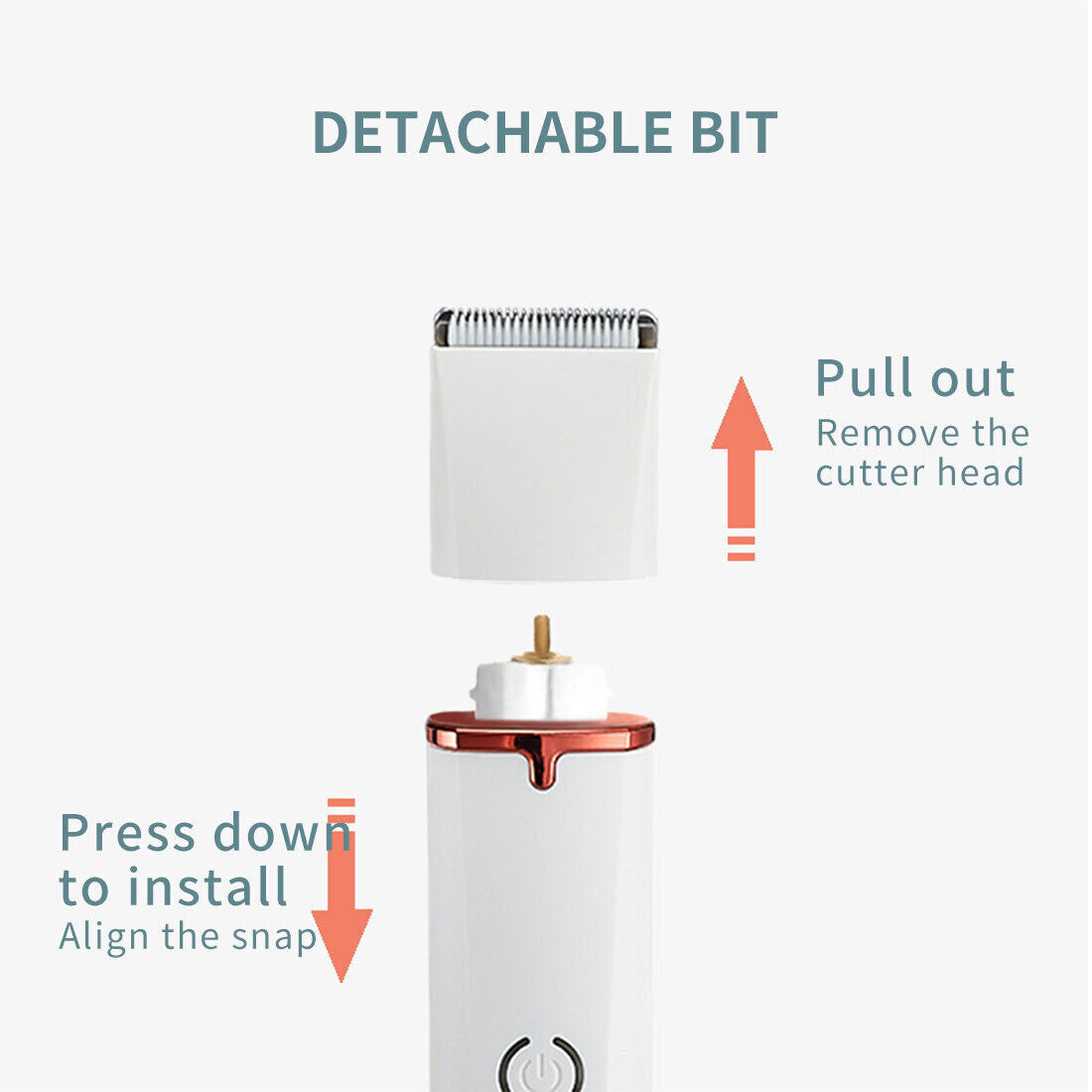 DETACHABLE BIT:Pull out to remove the cutter head and Press down to install.