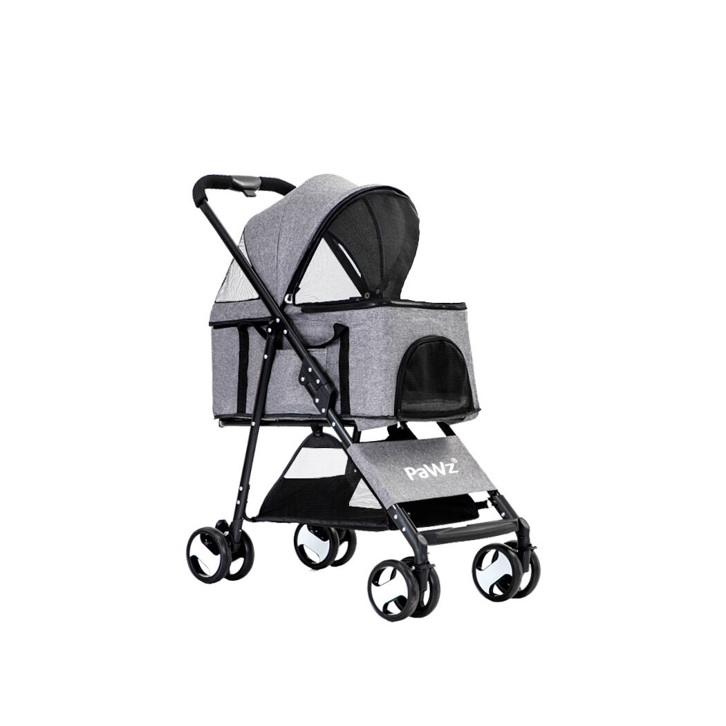 Made of high-quality steel and cationic fabric. Our pet stroller is a perfect example of convenience and practicality seamlessly embedded. Equipped with a sturdy steel frame to withstand regular usage and to offer great stability & durability. No matter what the weather it can take it all. It comes with special anti-dust fabric to prevent tiny micro particles from breaching in. Embark on an adventure, fold and unfold it with ease. Very light in weight simply pack it up and you are ready to go. Maneuver your way with its ergonomic handle and 360° rotatable front wheels. Have a look at how your pet is doing through its top peeking window. Featuring 6 wheels for a stress-free and easy-going ride. It comprises of removable and washable pads, easy for you to keep it neat and tidy all the time. After all the walk if you feel like taking a break, just lock the wheels up and park the stroller safely, it’s that simple!A pet to cater, a nature to feel, a moment to remember. Start your journey! Order your stroller now.