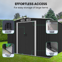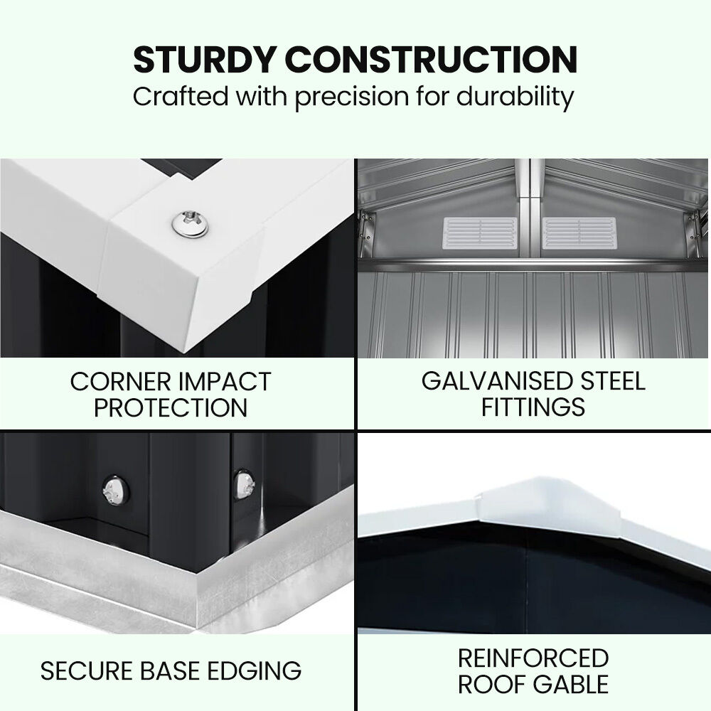 Optimise your outdoor storage with the PlantCraft 2.58 x 2.07 x 2.02m Galvanised Garden Shed, perfectly suited for storing gardening tools, equipment, and other essentials. Made from high-quality galvanised steel, this durable shed offers excellent corrosion resistance and withstands various weather conditions effortlessly.