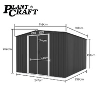Optimise your outdoor storage with the PlantCraft 2.58 x 3.14 x 2.02m Galvanised Garden Shed, perfectly suited for storing gardening tools, equipment, and other essentials. Made from high-quality galvanised steel, this durable shed offers excellent corrosion resistance and withstands various weather conditions effortlessly.