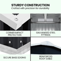 Front and rear air vents ensure the interior is well-ventilated, helping to reduce mould and any build-up of fumes. Smooth sliding doors offer wide, easy access, comfortably accommodating large items.The bonus floor frame (RRP $179.90) adds structural strength and can also support optional flooring on top of it.