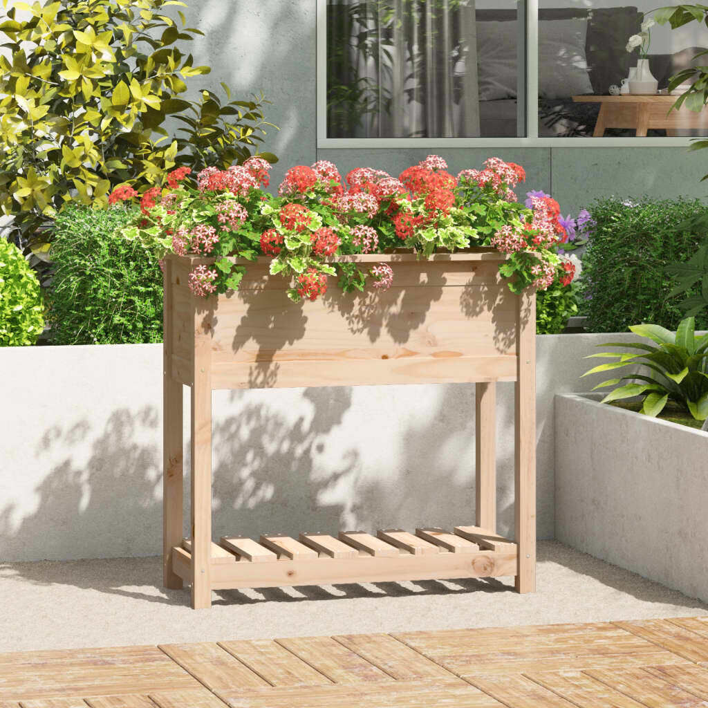 $97.19This wooden planter is an excellent choice for DIY enthusiasts to decorate their living rooms, balconies, and patios. Solid pine wood: Solid pine wood is a beautiful natural material. Pine wood has a straight grain, and the knots give the material its signature, rustic look.Optimal height: The raised bed, featuring an optimal ergonomic working height, allows you to stand or sit comfortably in front of the flower box, and protects your knees and back.Ample space: This flower pot has a deep flower box for planting, which provides ample planting space to grow vegetables, herbs, flowers, and plants.Practical shelf: The garden planter is designed with a shelf, allowing you to store potting soil and plant accessories within easy reach.Stable frame: The wooden frame of the garden pot ensures sturdiness and stability. Note:Each product comes with an assembly manual in the box for easy assembly.