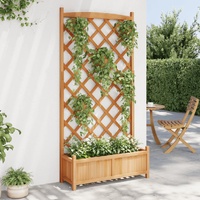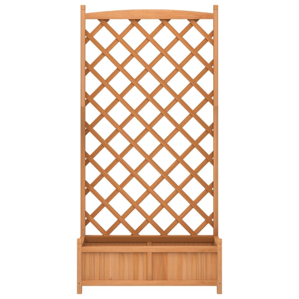 $162.89This wooden planter with trellis is an excellent choice for climbing plants in your garden, patio and terrace. Solid fir wood: Solid fir wood is a beautiful and durable material that maintains its integrity even when exposed to moisture. It does not dry out or warp, making it a reliable choice.Sufficient space: This garden planter is wide and deep enough, providing ample room for growing a variety of plants, flowers, and vegetables. Additionally, the hollow bottom allows for good ventilation and drainage.Trellis fence panel: The patio planter comes with a beautiful trellis fence panel that is perfect for supporting climbing and hanging plants like roses, ivy, or vines. It also adds a stunning visual feature to your outdoor space.Wide applications: This outdoor planter is designed with a round top bar, giving it a stylish and elegant appearance that complements any outdoor space. It can be placed in a patio corner or leaned against a wall or fence. Good to know:The delivery includes the planter only; the liner is not included.