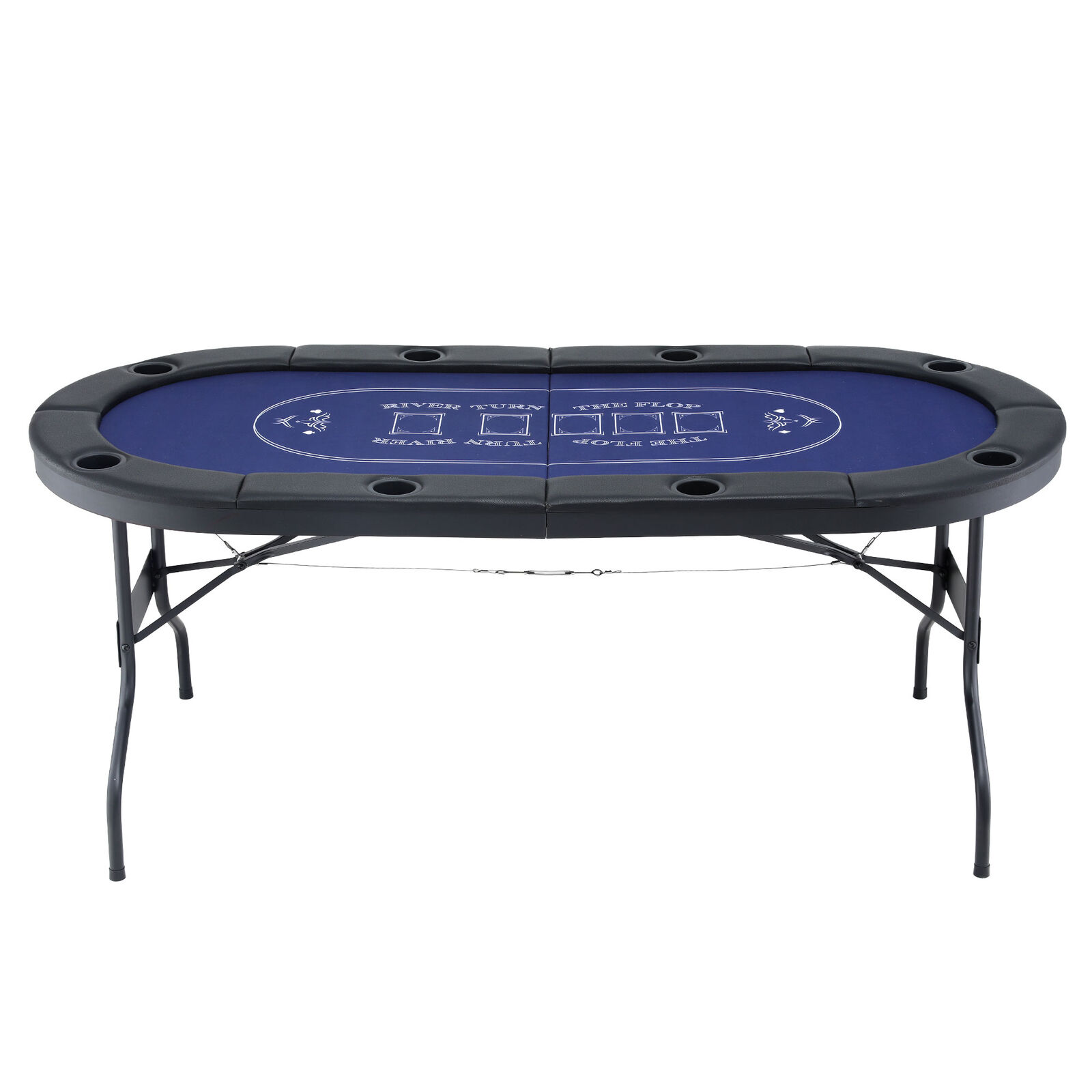 Host your next card night with this 183cm folding poker table. This poker table top is ideal for 6 to 8 players. The smooth, casino-style felt surface and PU leather rails are ready for any game. It features a folding poker table with cup holders (8 in total) and a sturdy metal frame. When you're done, this poker table folds in seconds for easy storage. No tools needed.