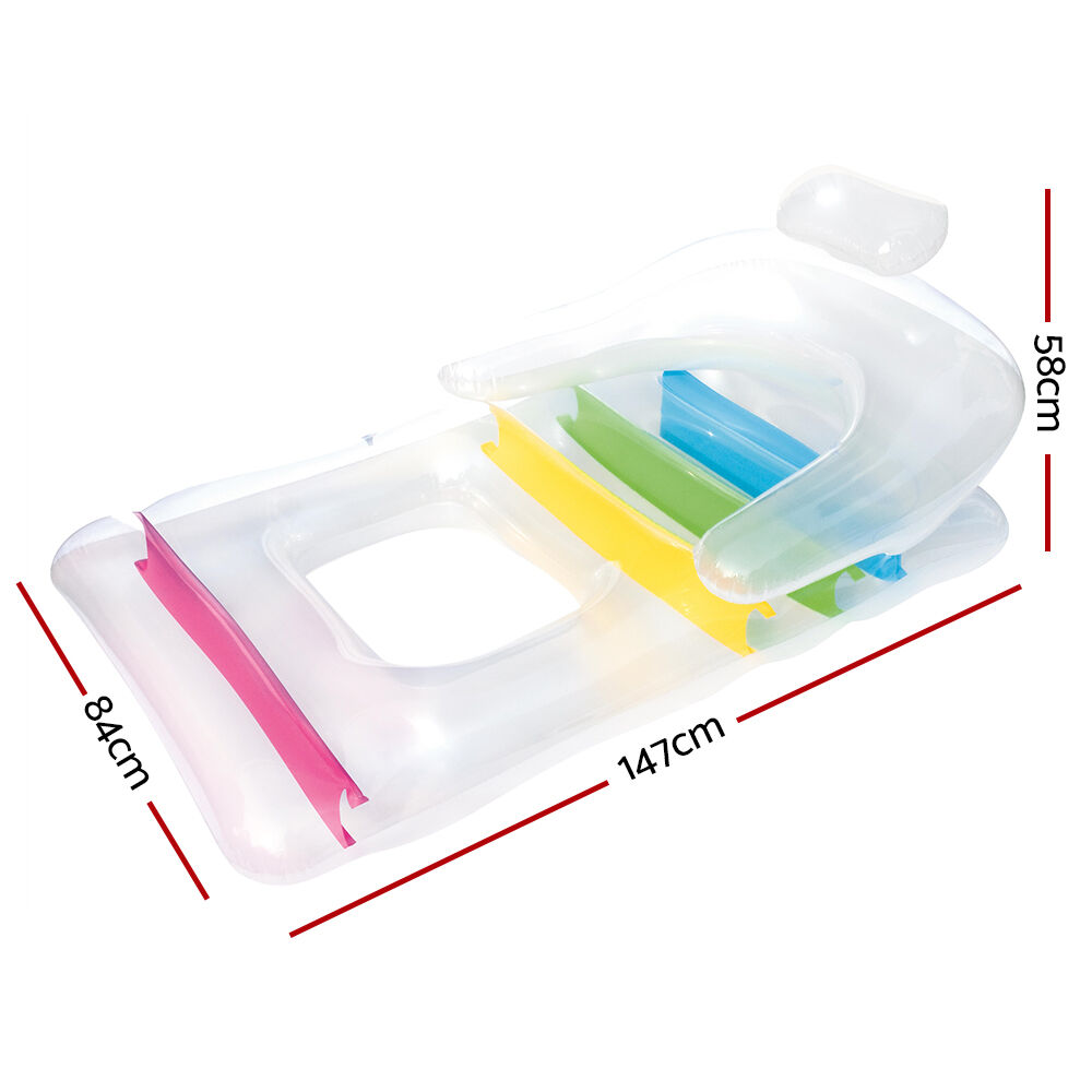 $29.44Kick back and chill out on your pool with our Bestway Inflatable Lounge. With its see-through design and colourful interior, our inflatable lounge is guaranteed to provide you plenty of aquatic fun and relaxation. Made from sturdy pre-tested vinyl and a colourful I-beam construction, the inflatable lounge is durable and has two leak-proof air chambers. You can float away for hours on end as the headrest, armrests and backrests provides ultimate comfort. The inflatable lounge is made to last for many summers, but should an accidental tear occur, our supplied repair kit should be adequate to patch the fun back with minimum fuss. So, get ready for a fine summer and soak in the sun and sea in fine style with our inflatable lounge.