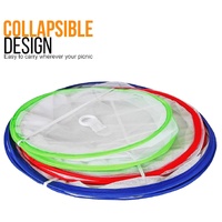 3 Food covers to protect inside the home or outdoor gatherings. Fine nylon mesh with ring to uncover. Just place these pop-up mesh Food Covers over salad, fruit, pasta, pies, layer cakes, chips and other fare... nothing dries out or becomes a feasting spot for flies and other critters, and you can see the food underneath. These food cover sets are very large, tall enough to cover a cake, and perfect for any outdoor function.